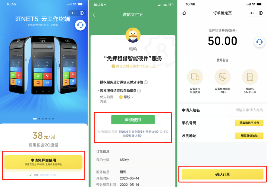 微信POS機(jī)信用免押系統(tǒng)是我們?cè)?020年全新推出的一款提供免押租借智能硬件服務(wù)的系統(tǒng)。只要用戶的支付分在550分及以上,就可以通過(guò)微信進(jìn)行線上租賃。