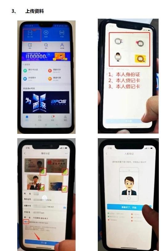 2.3機器綁定:打開APP,首頁的掃一掃→掃描機器背面條形SN→按提示步驟做身份檢測(人臉識別)→同意代收服務費點擊確定→成功綁定設備之后就可以首刷激活