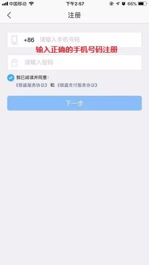 2.1:下載APP并注冊:新用戶入網蘋果或者安卓手機在商城/應用商店直接搜索“銀盛通”,下載APP后點擊注冊,輸入手機號,密碼(6-22數字+字母),獲取驗證碼